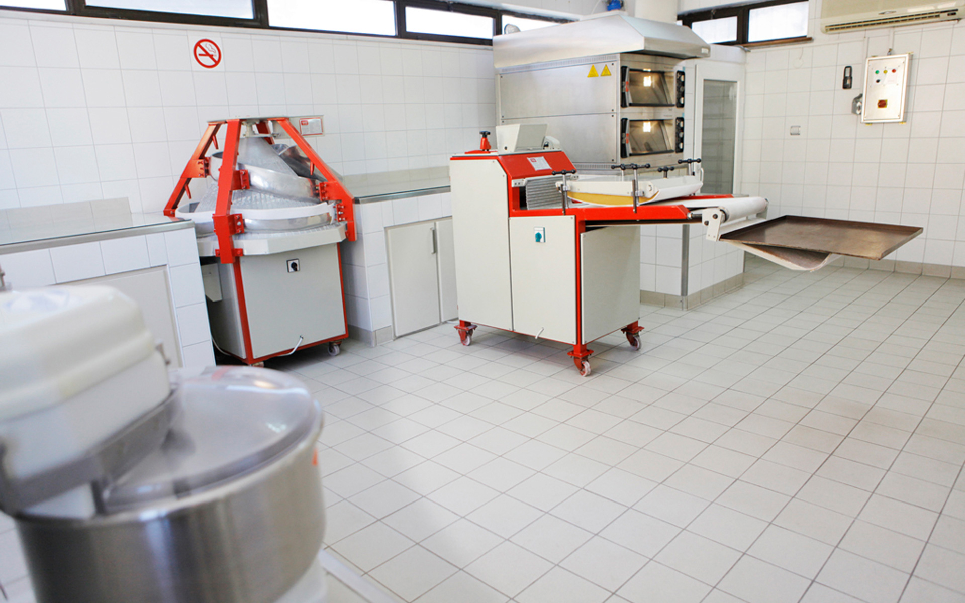 - Hamurun yoğrulduğu Diosna marka iki adet spiral mikser,- Birinci fermentasyon ve kesme-tartma bölümü,- Yuvarlama makinası,- İkinci fermentasyon bölümü,- Şekillendirici,- Son fermentasyonun yapıldığı sıcaklık ve nemin kontrollü olarak götürüldüğü fermentasyon kabini ile pişirme için Werner & Pfleiderer marka iki adet ekmek fırını bulunmaktadır.